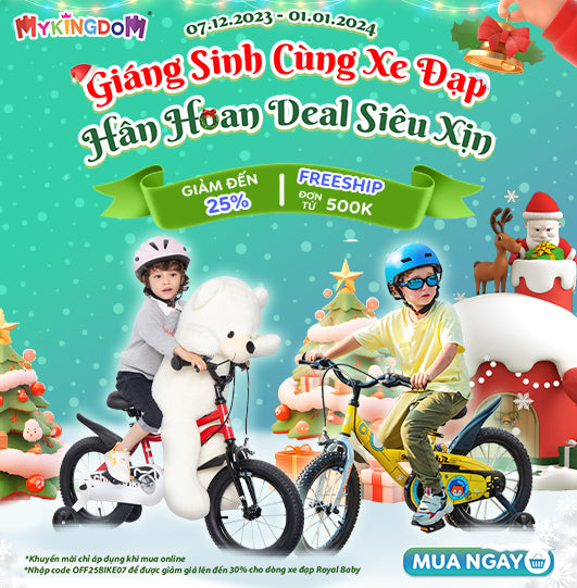 Christmas with bicycles - Enjoy super good deals is an exclusive online program taking place from December 7, 2023 to January 1, 2024, helping parents choose the right bicycle for their children at the right price. reduced up to 30%. High quality Chipmunk and Royal Baby products are waiting for you at Mykingdom Toy Kingdom.