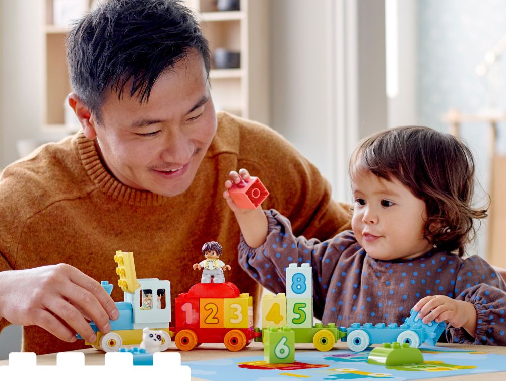 The next LEGO toy set for 2 year olds in the collection is LEGO Duplo 10954 Counting train (23 pieces) . The product includes 10 numbered bricks that can be placed in the carriages of the trolley train. Children improve their motor skills when driving trains, loading, unloading and sorting number bricks. Combined with LEGO Duplo characters of a boy, girl and cute dog, children can enjoy imaginative role-play.