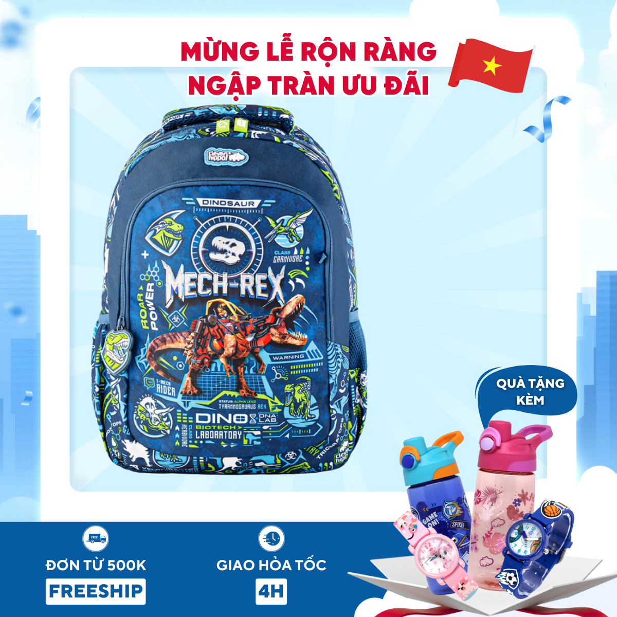 Easy Go Mech-Rex Dino fashion backpack is a combination of powerful primitive dinosaurs and modern machines, creating an "invincible" character with a strong, coordinated blue color tone. with unique green color.