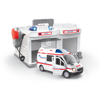 First aid station toy set with walkie-talkie, lights and sounds includes: