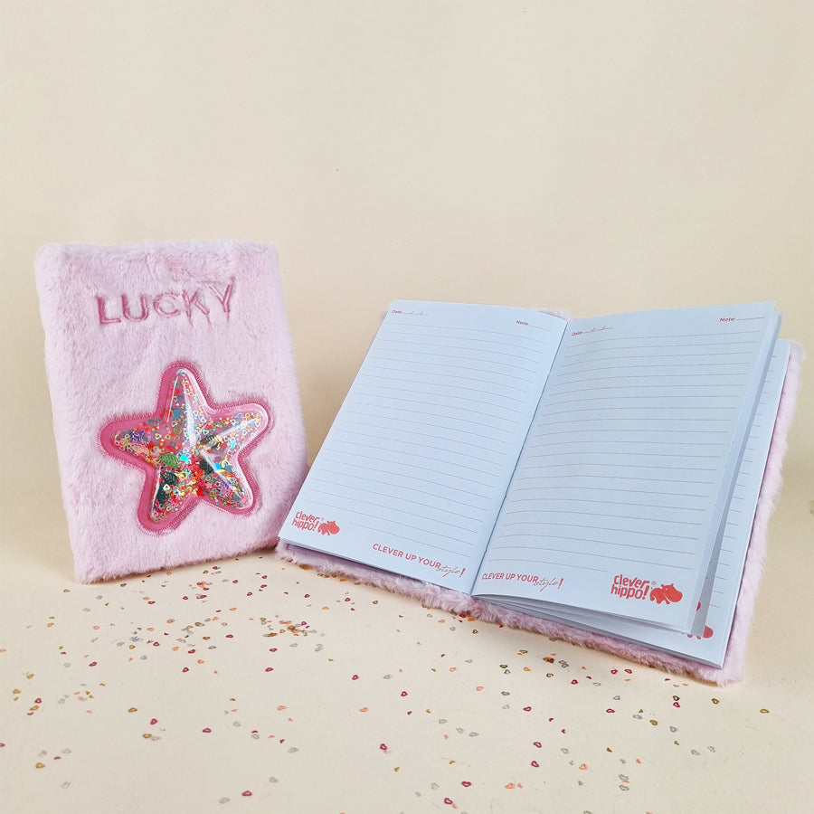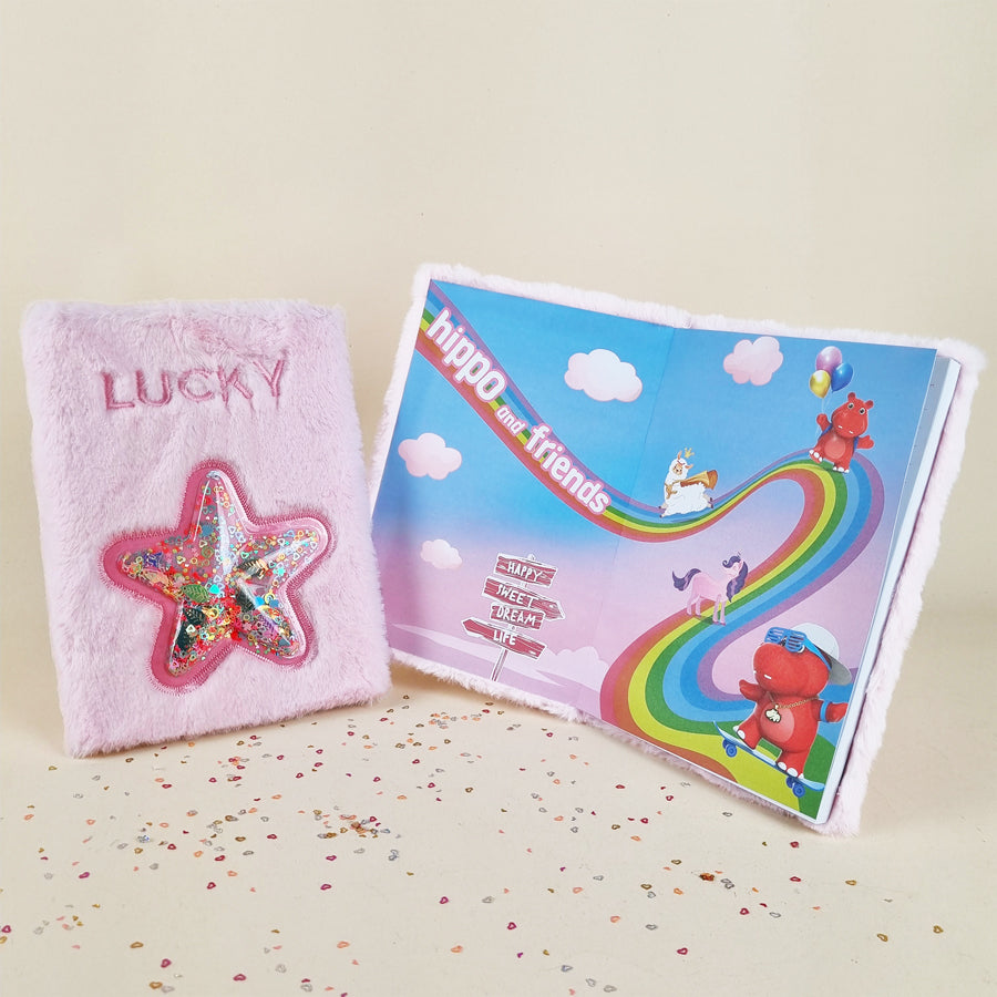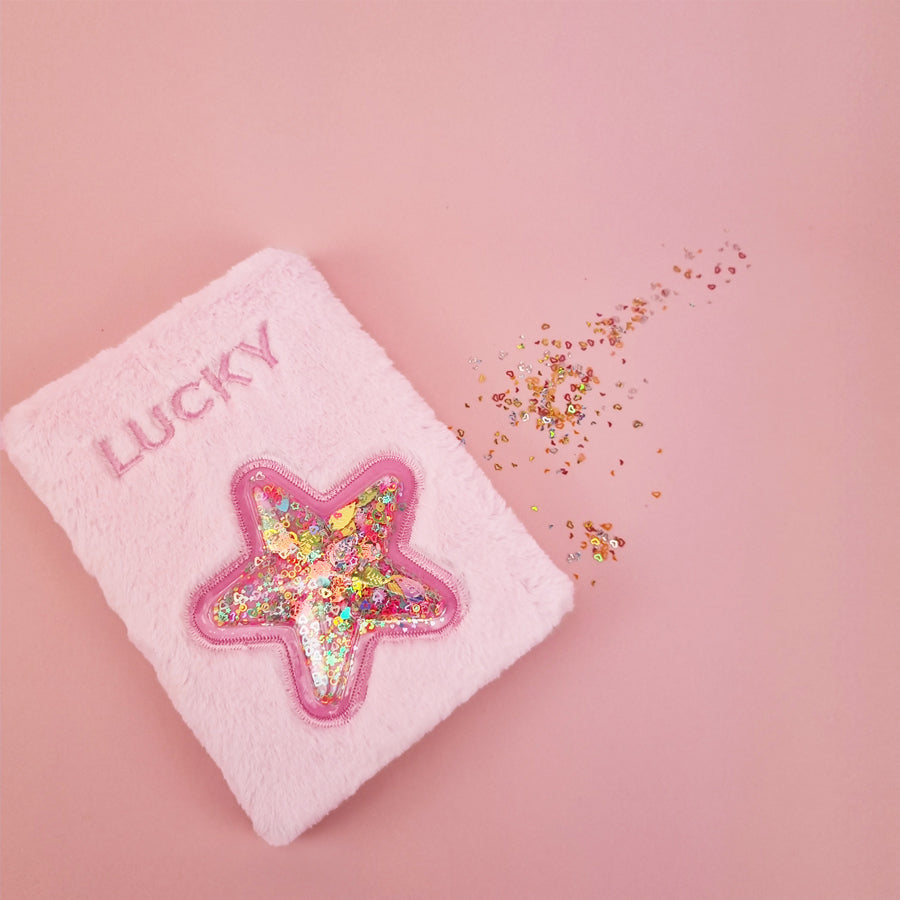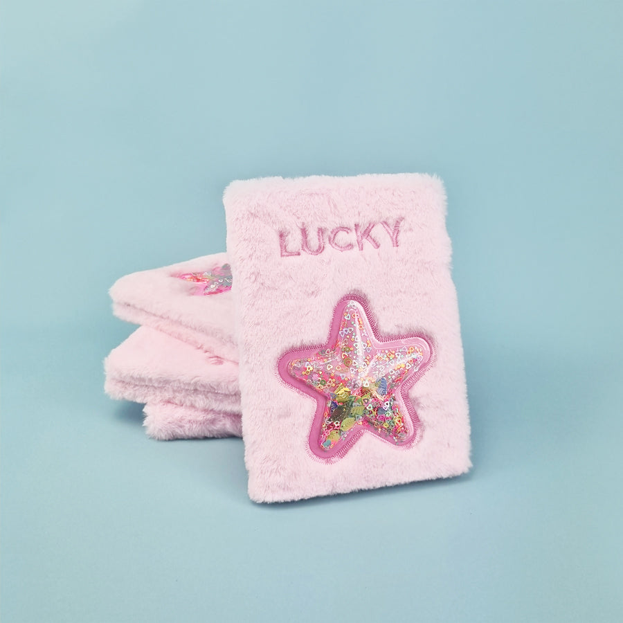 Sparkle Star notebook combo including notebook and Squishy Surprise pen promises to be a learning item that girls will love. Sparkle Star Notebook shimmers with 3D star images and lots of sparkling glitter that stand out on the extremely soft and adorable plush cover. The lucky star with the sweet pink Lucky words hopes to bring a lot of luck to the "owner" of the notebook.