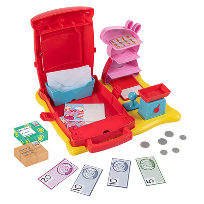 + Peppa postal set includes a weighing scale, stamps, coins, banknotes, postcards and envelopes.