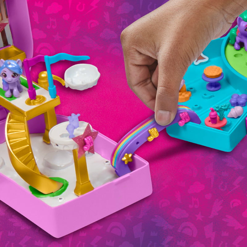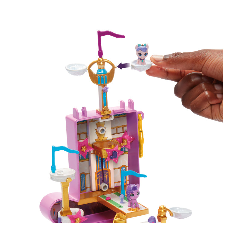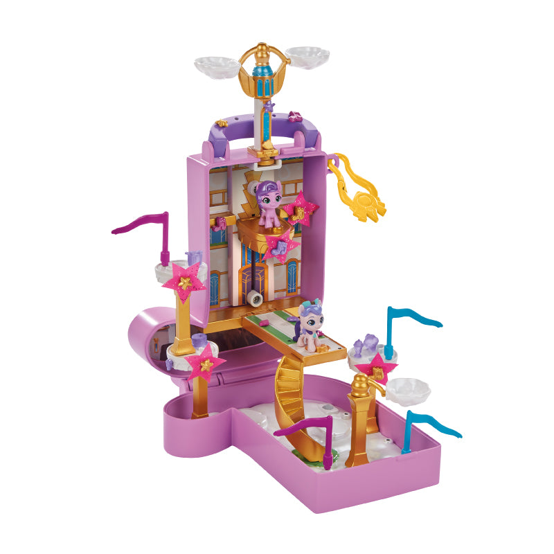 • OVER 40 ACCESSORIES INCLUDED: Includes a compact carrying case, 2 miniature Pony horses, and many landscape accessories inspired by the My Little Pony palace.