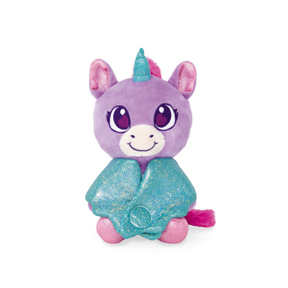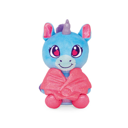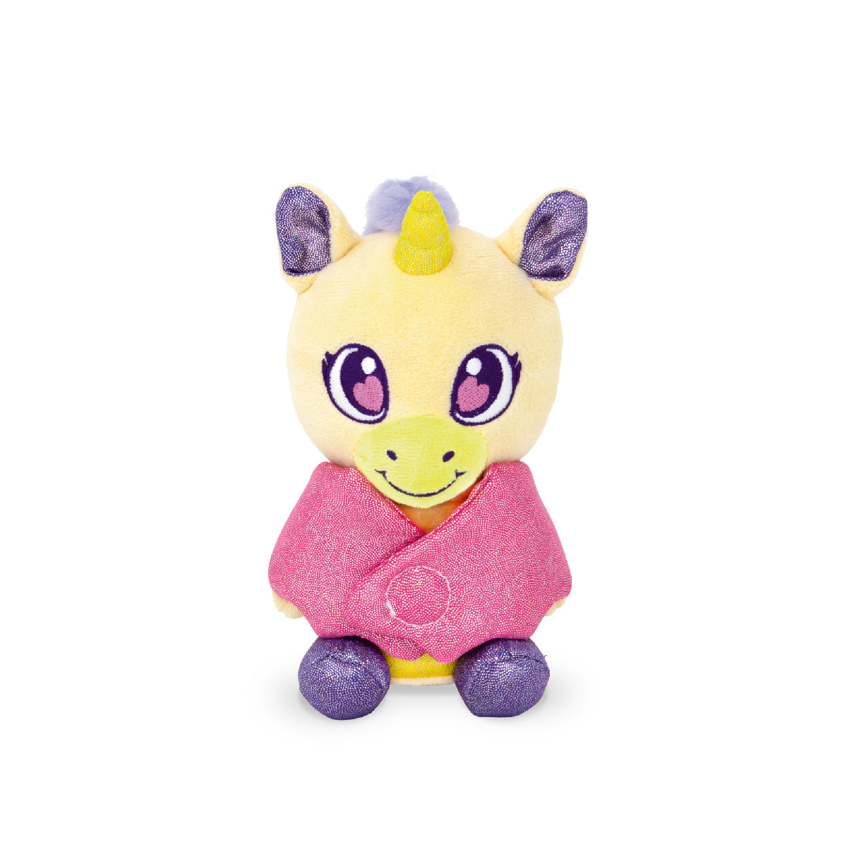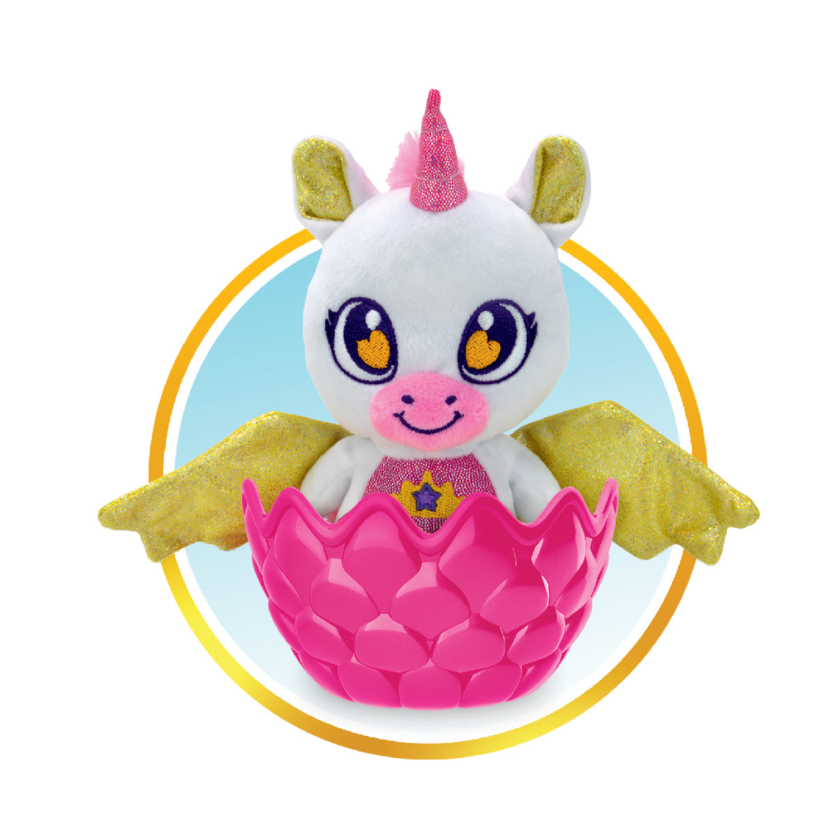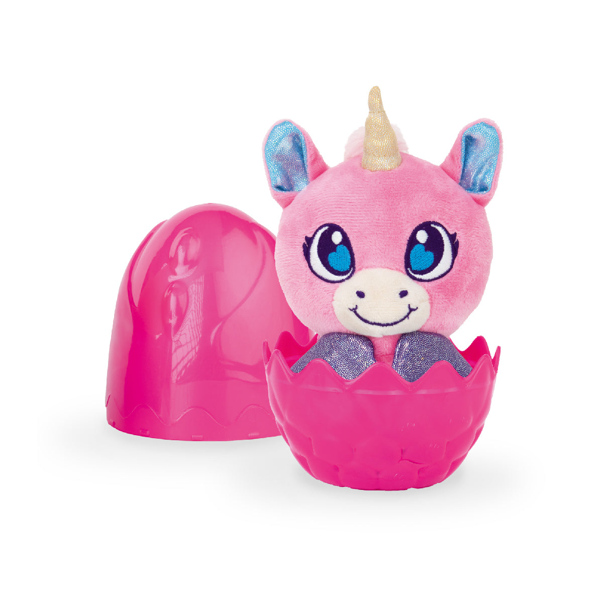 Adorable unicorn-shaped stuffed toy, contained in a novel egg.