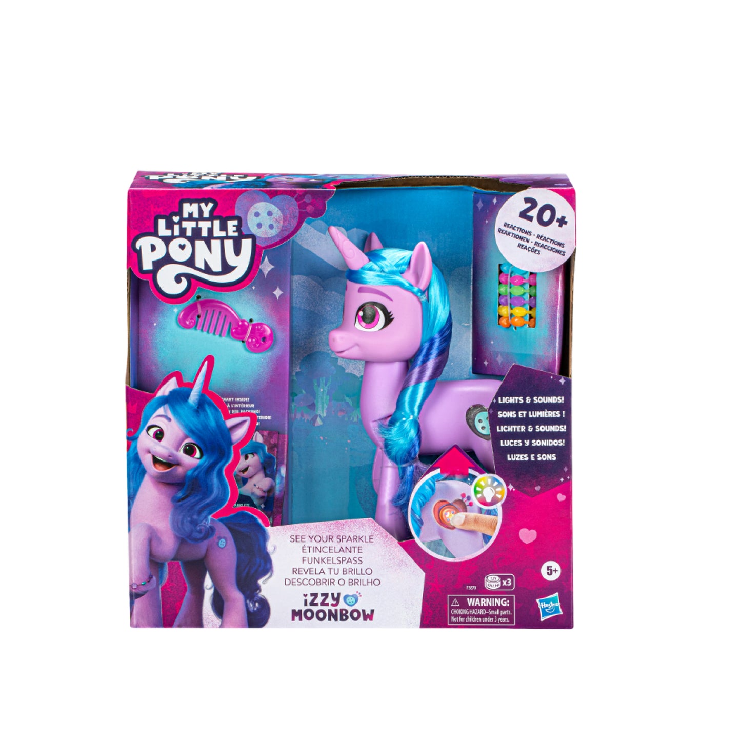 • Pony Girl IZZY MOONBOW: Izzy is a purple Unicorn from Bridlewood, inspired by the character from the movie My Little Pony: A New Generation and the series My Little Pony: Make Your Mark
