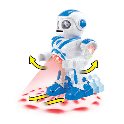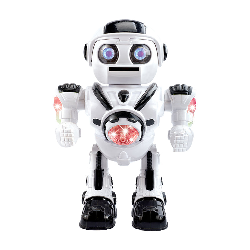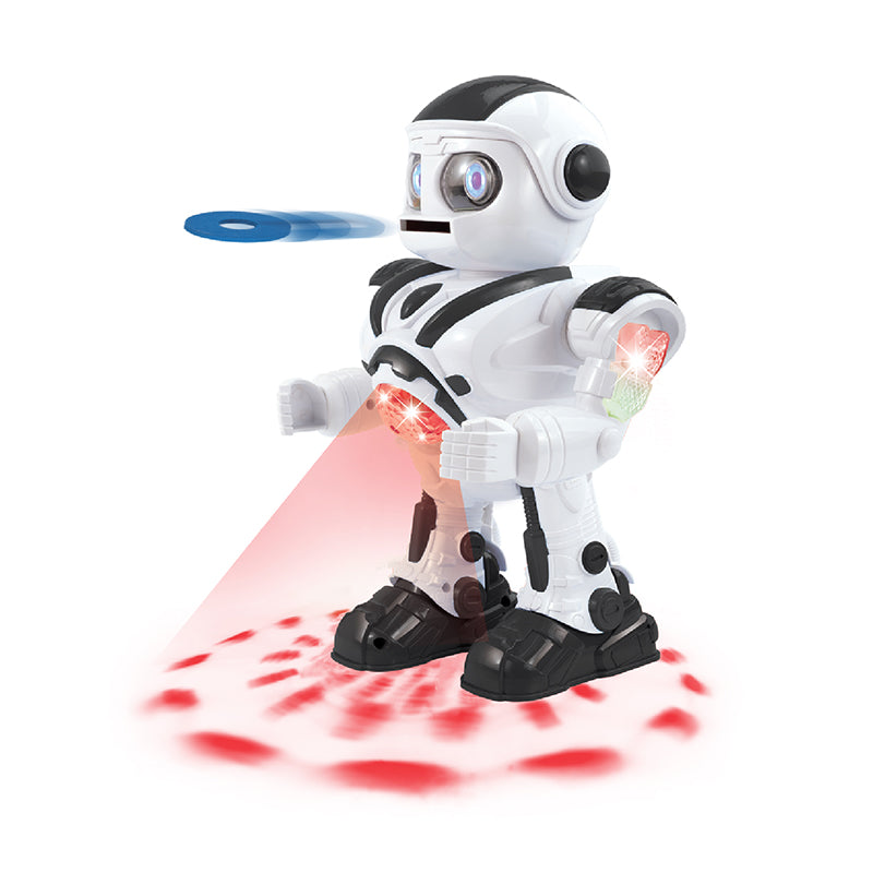 With the automatic performance feature, the Robot will sequentially perform a series of movements such as moving, making sounds, glowing eyes and shooting discs from its mouth as soon as you press the ON button.