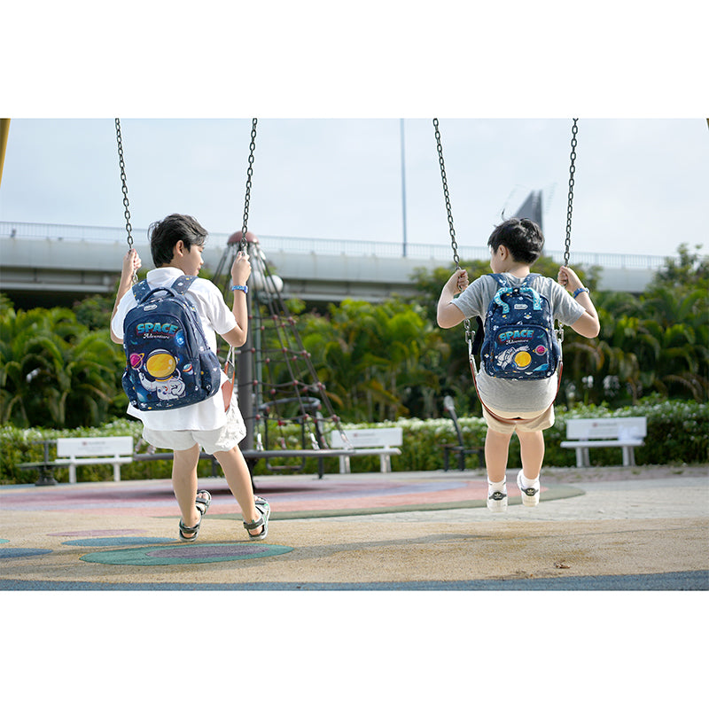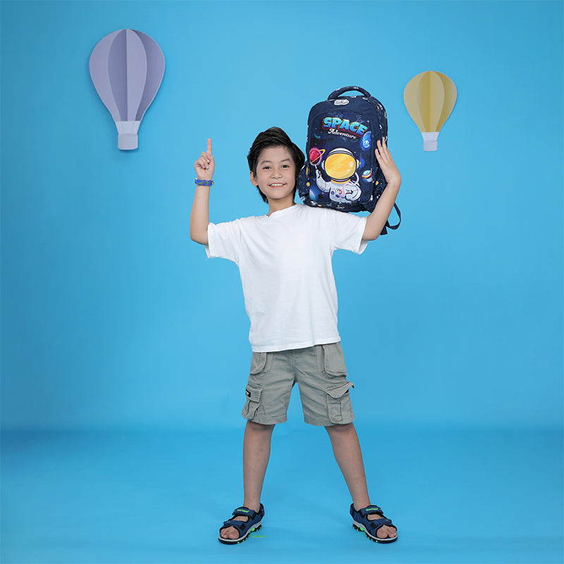 Chiếc balo đa năng Space Adventure kết hợp màu xanh mơ mộng cùng màu vàng rực rỡ tăng thêm sự nổi bật và phong cách cho bé ở cả sân trường và sân chơi.