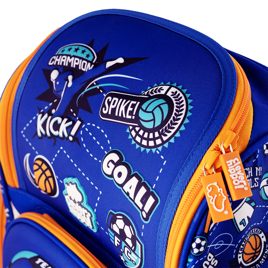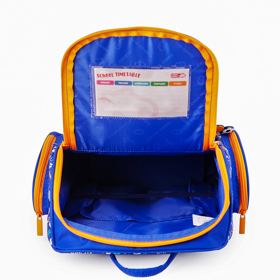 - Ngăn chứa tiện dụng: Ngăn chính có kèm đai thun giúp cố định sách vở, cùng với túi lưới giúp phân bổ, sắp xếp đồ dùng dễ dàng; Ngăn phụ có thể đựng bút viết và đồ dùng học tập; Ngăn chính đựng vừa giấy A4, sách bài tập,...; 2 ngăn hông có khóa kéo tiện dụng, dùng đựng bình nước hay các vật dụng nhỏ xinh của bé.