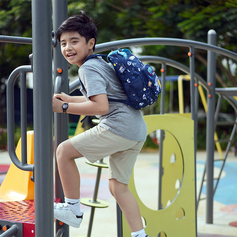 - Balo Mini Space Adventure siêu phù hợp với các bé mẫu giáo nhờ trọng lượng chỉ 300g, không khiến đau vai, không gây khó chịu.