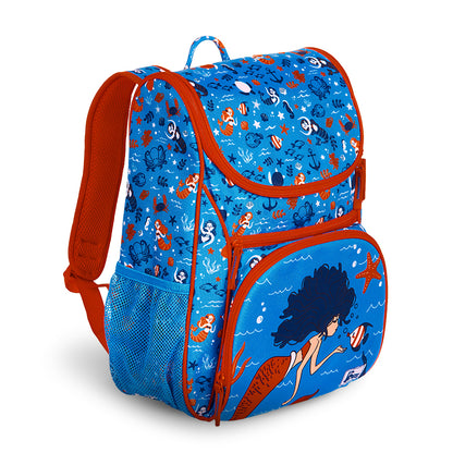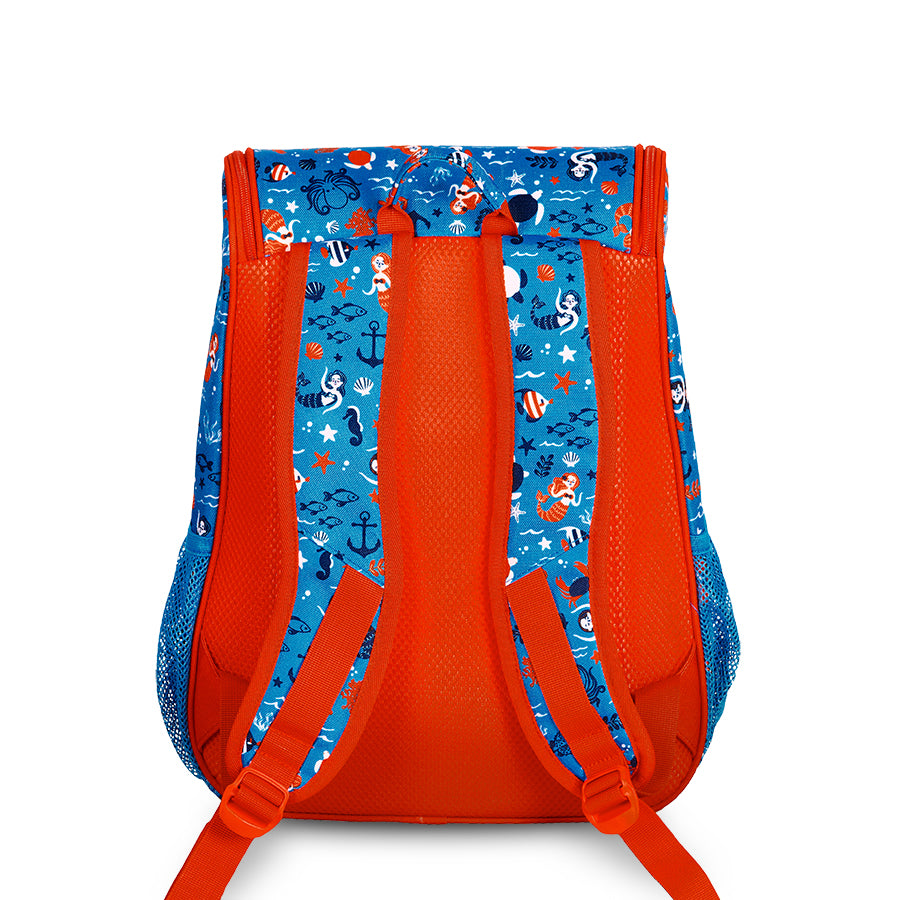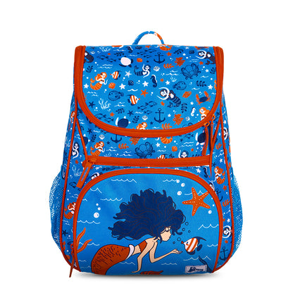 Balo chủ đề thế giới đại dương kỳ diệu, được thiết kế theo phong cách Hàn Quốc với các họa tiết nàng tiên cá, kết hợp với sắc xanh dương cùng màu đỏ cam san hô.