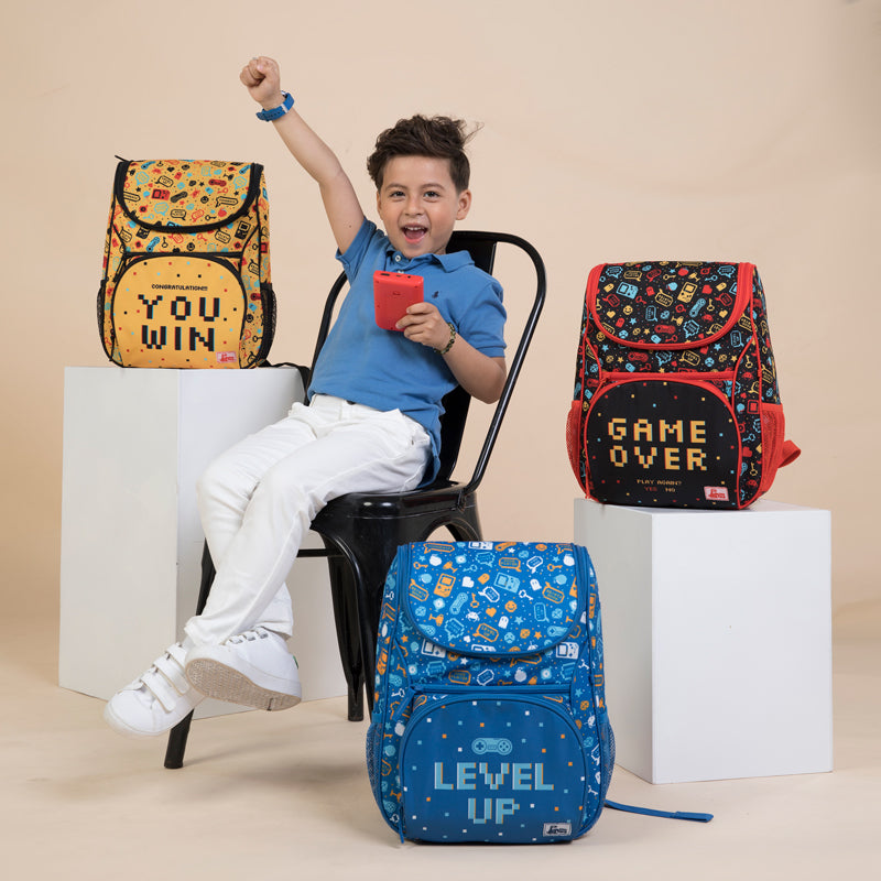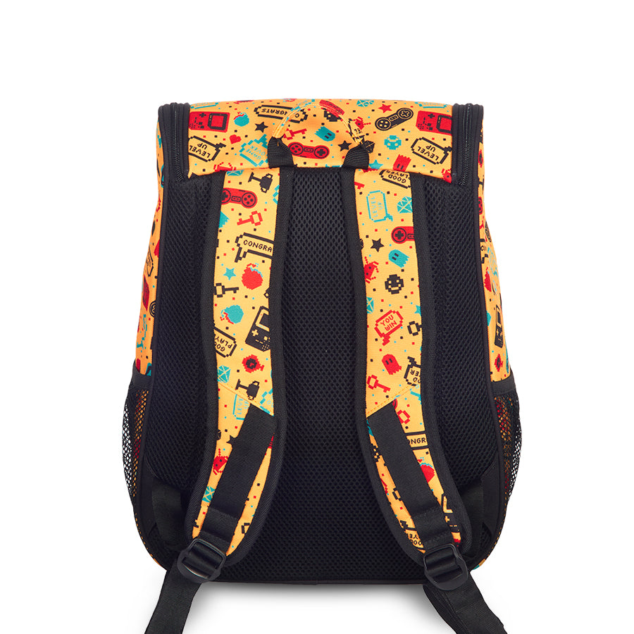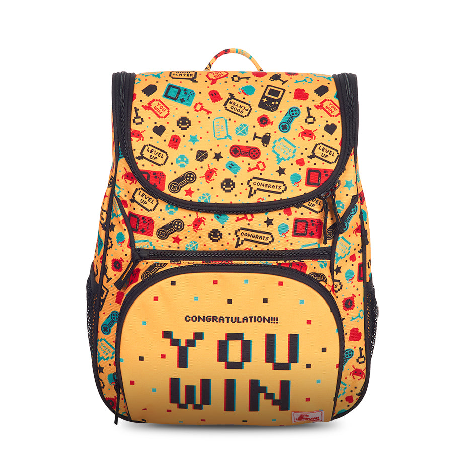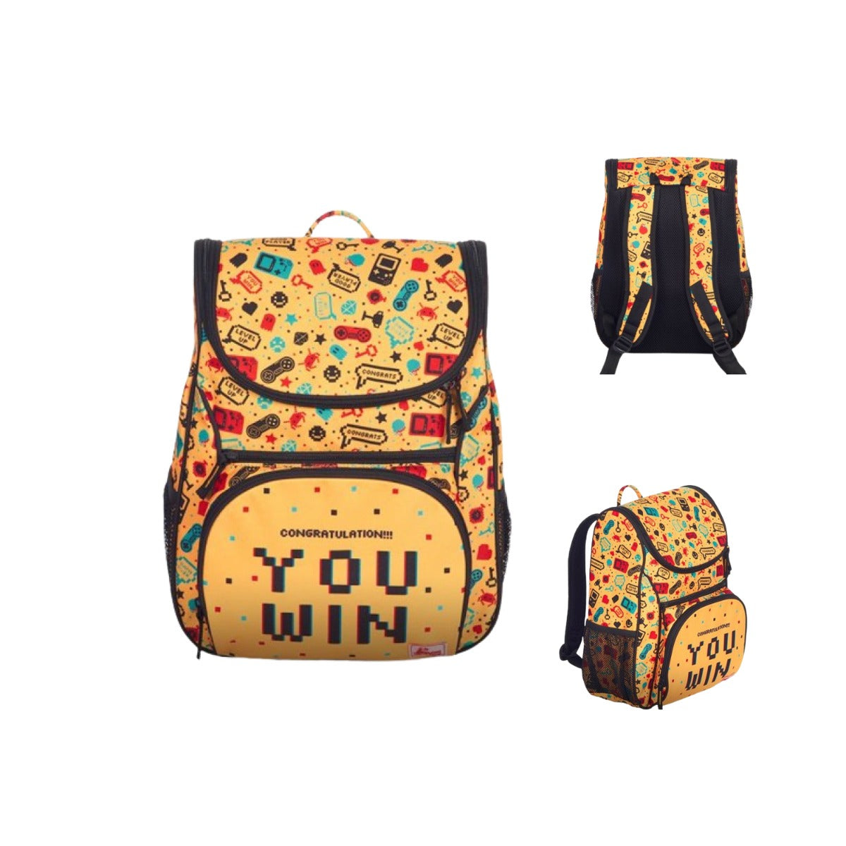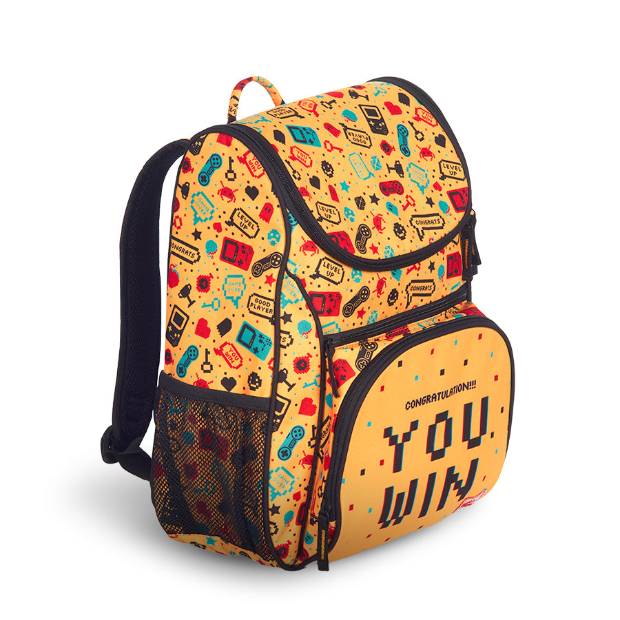 Ba lô chống gù đa năng Doni Dino mẫu BFG1105 chủ đề thế giới trò chơi, được thiết kế theo phong cách Hàn Quốc với các họa tiết trò chơi điện tử quen thuộc, cùng sắc vàng rực rỡ, bắt mắt