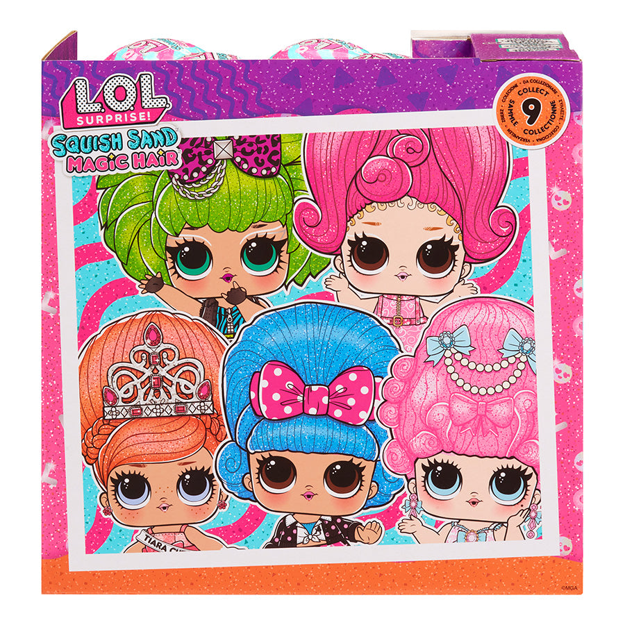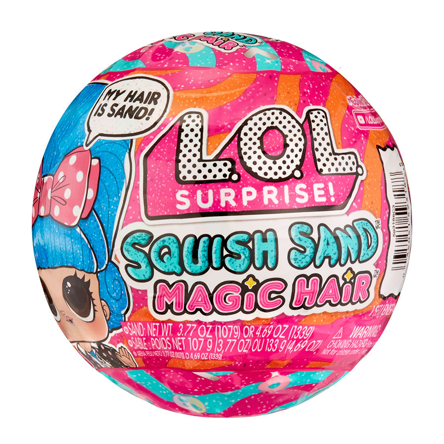 Bạn có thể bẻ và bóp để mở Squish Sand! Đặt búp bê của bạn vào khuôn cùng với cát để tạo kiểu tóc Squish Sand hoàn toàn mới có thể tồn tại trong 3-4 phút. Lấy quả bóng LOL Bất ngờ của bạn nén cát lại để tạo ra các họa tiết vui nhộn. Bạn có thể chạm vào hoặc dùng lược để tạo các hình dạng lượn sóng.
