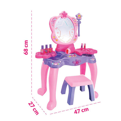 Bộ bàn trang điểm công chúa màu hồng tím vô cùng nữ tính và xinh xắn cho các bé gái thoả sức làm đẹp.