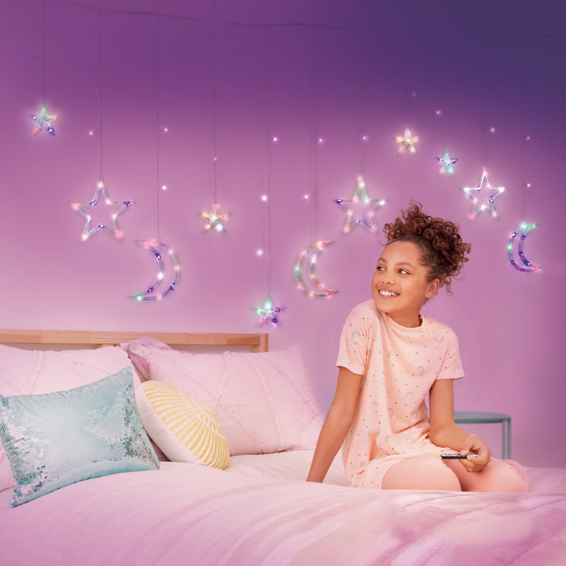Bộ sản phẩm rất thích hợp để trang trí phòng ngủ, hoặc làm phông nền cho những bữa tiệc ngủ ban đêm. Chắc chắn bộ trò chơi sẽ mang đến cho bé yêu những khoảnh khắc tuyệt vời như đang du hành cùng những vì sao lấp lánh.