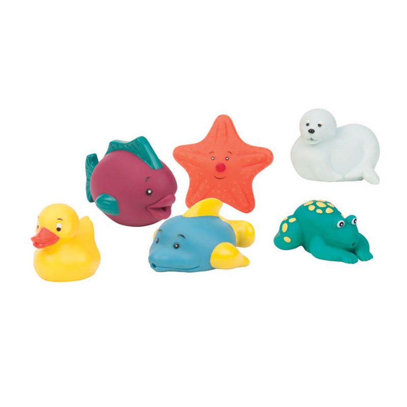 Bộ đồ chơi gồm 5 con thú làm từ nhựa, bề mặt mềm mịn và có trở về hình dáng ban đầu sau khi bị bé nắm bóp Giúp trẻ học về màu sắc, hình dạng tên gọi của các con vật khác nhau đồng thời giúp trẻ phát triển kĩ năng vận động thô thông qua hoặc động nắm, bóp..