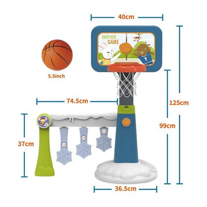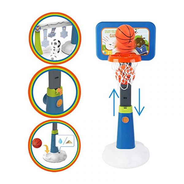 + Kích thước từ chân đế đến phần bảng lưới là 125cm. Có 3 nấc tăng giảm độ cao phù hợp cho chiều cao của bé.