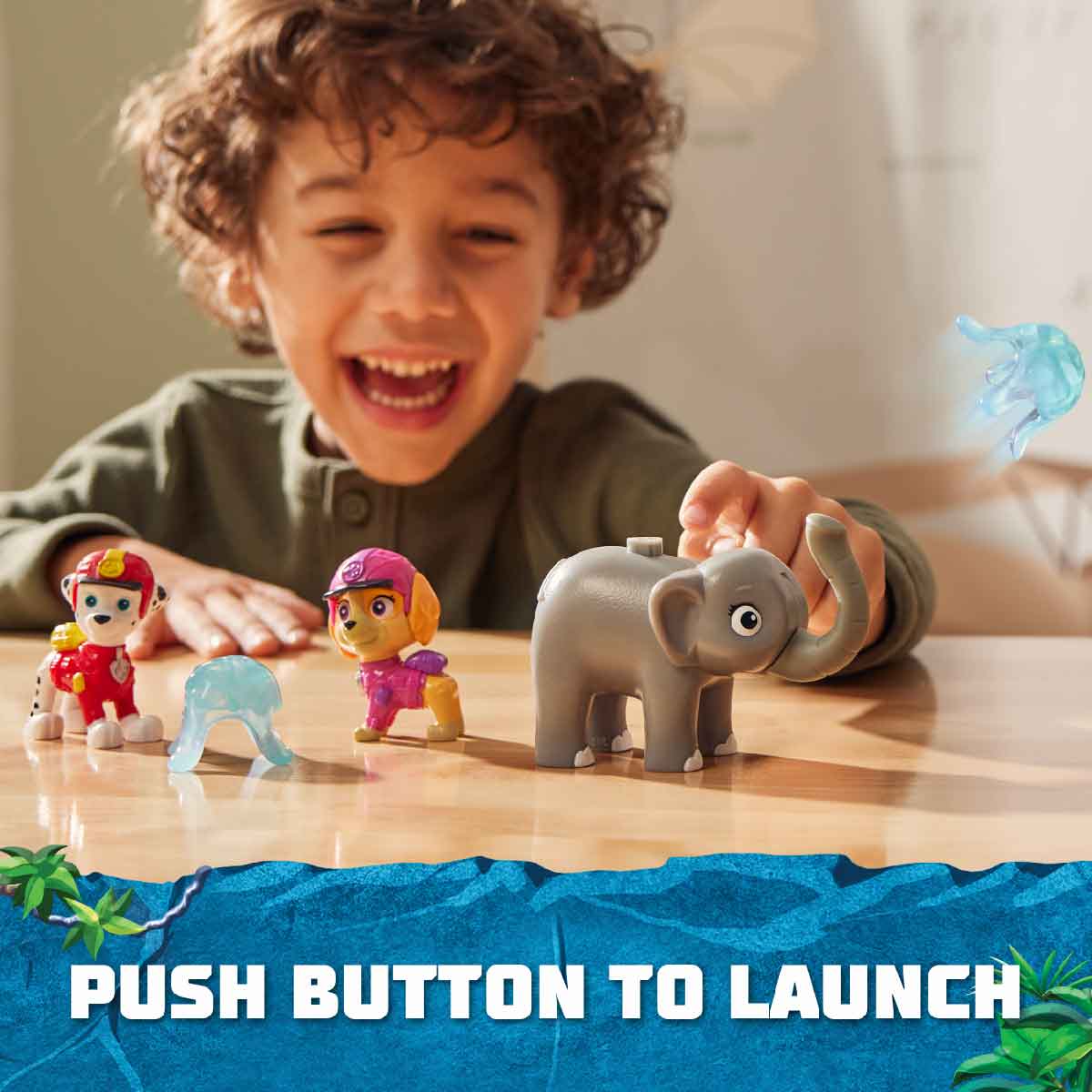 Khi đến lúc giải cứu thú vị, hãy gắn đạn nước vào vòi voi và kéo vòi trở lại vị trí, sau đó nhấn nút để phóng và cứu hộ nào! Sử dụng trí tưởng tượng của bạn để tái tạo các tập phim yêu thích của bạn từ Paw Patrol phiên bản rừng xanh hoặc tạo ra các nhiệm vụ hoàn toàn mới!