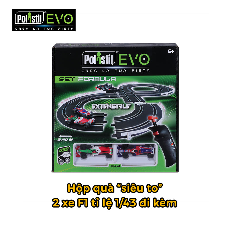 + Sản phẩm gồm đường đua với nhiều mảnh lắp ghép, hộp điều khiển và 2 mô hình xe đua F1