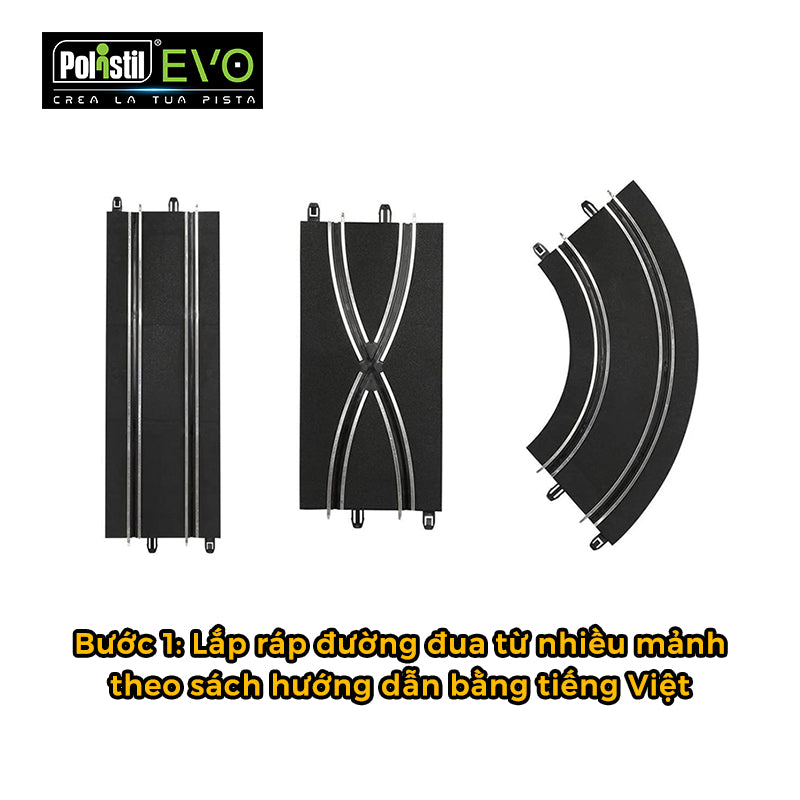 - Bước 1: Lắp ráp đường đua theo sách hướng dẫn bằng tiếng Việt