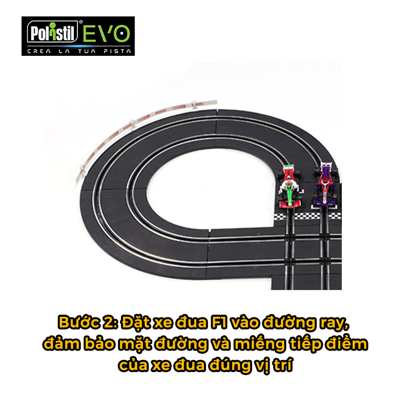 - Bước 2: Để xe đua F1 vào đường ray, đảm bảo sao cho mặt đường và miếng tiếp điểm của xe đua đặt đúng vị trí