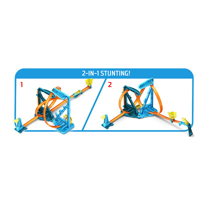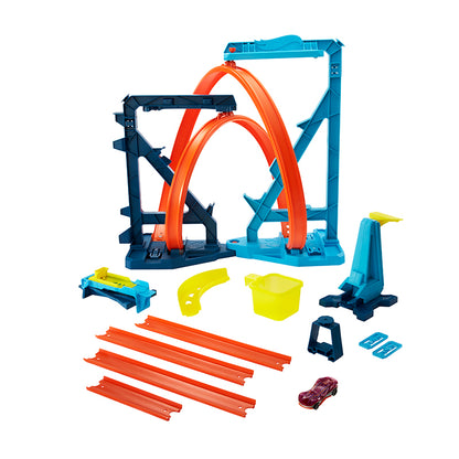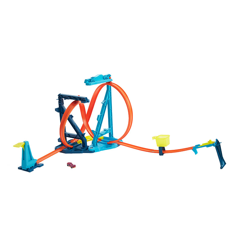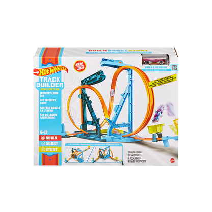 Bộ đường đua vô cực Hot Wheels Track Builder biến một vòng xoay tiêu chuẩn thành hai cách thiết lập ly kỳ và đầy thử thách, mời trẻ em thử nghiệm động lực theo những cách trực quan thú vị! Thiết bị phóng đứng đưa xe ô tô tăng tốc vào vòng xoay vô cực và sau đó vào đường thoát với một cú nhảy làm vào rổ. Nó bao gồm một xe Hot Wheels tỷ lệ 1:64 và hướng đến trẻ em từ 6 đến 12 tuổi. Màu sắc và đồ trang trí có thể thay đổi.