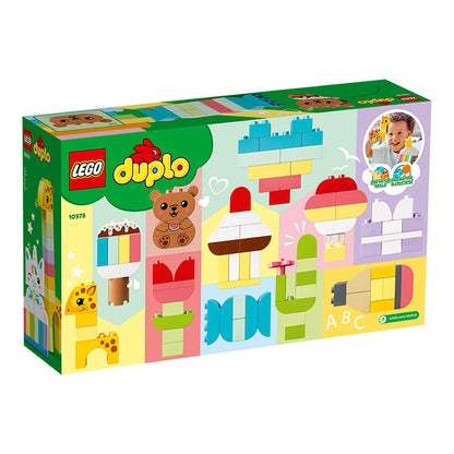 Giới thiệu cho các bé từ 18 tháng tuổi trở lên tham gia hoạt động lắp ráp sáng tạo với LEGO® DUPLO® Bộ gạch Duplo sáng tạo cho bé (10978). Dễ dàng lắp ráp thành nhiều con vật dễ thương và nhiều chủ đề khác nữa. Các bé kết hợp các viên gạch đầy màu sắc để lắp ráp thành các đồ vật quen thuộc, chẳng hạn như tên lửa, trái tim, ngôi sao, bánh, kỳ lân, hươu cao cổ và gấu và tận hưởng niềm vui lắp ráp tự do. Các miếng ghép màu sắc và có thể lắp ráp thành nhiều mô hình, bộ gạch sáng tạo này dễ dàng kết hợp với các bộ khác giúp các bé khám phá kỹ năng lắp ráp.