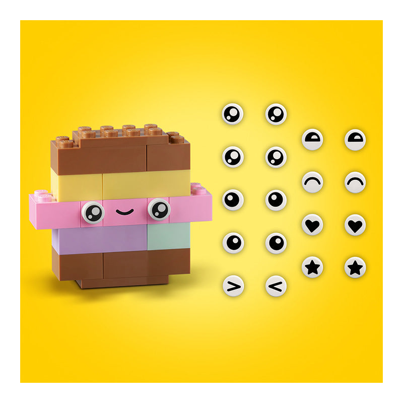 Mang lại niềm vui và sức sống cho tòa nhà sáng tạo của bé cưng với sự kết hợp đầy cảm hứng của những viên gạch với nhiều sắc thái phấn nổi bật. Một sự bắt đầu hoàn hảo cho trẻ với 5 mô hình dễ lắp ráp – một đám mây, một cây kem, một con khủng long, một con mèo và một con rô-bốt. Hãy sử dụng 18 khối hình mắt biểu cảm để làm cho các mô hình trở nên sống động. Sau đó, khi sự tự tin sáng tạo của bé yêu tăng lên, hãy bắt đầu cuộc vui xây dựng và tự do lựa chọn thiết kế của riêng mình!