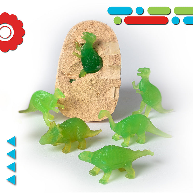 Với Bộ Khảo Cổ 6 Trứng Khủng Long, bé có thể hóa thân thành một chuyên gia khảo cổ thực sự để trải nghiệm các công việc như khai quật những khối đất đá hình quả trứng, để truy tìm ra những chú khủng long tí hon ẩn sâu bên trong khối đá. Đặc biệt những chú khủng long này có khả năng phát sáng trong bóng tối. Bé hãy khám phá thế giới khủng long thời tiền sử bằng cách sưu tầm thật nhiều loài khủng long khác nhau với những bộ Bộ Khảo Cổ 6 Trứng Khủng Long– 1345008451 nhé!