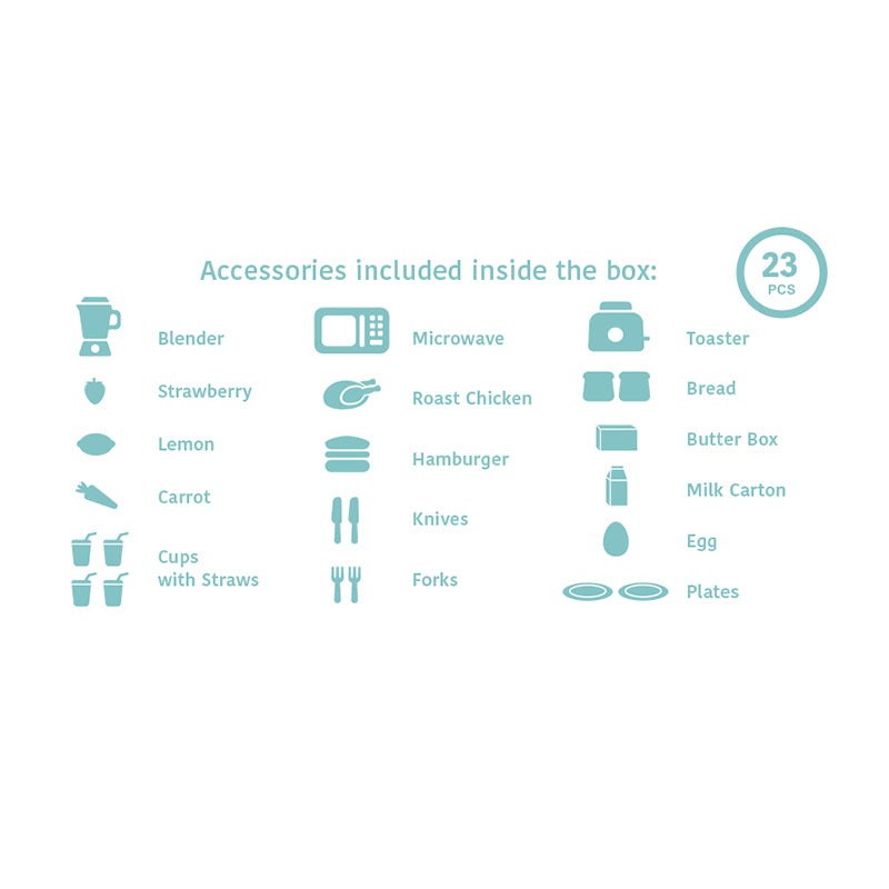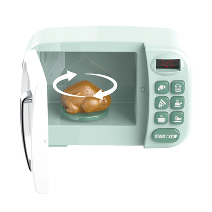Combo bộ 3 máy gia dụng làm bếp mini tiện lợi, gồm máy xay sinh tố, lò vi sóng và máy nướng bánh mì. Bộ sản phẩm bao gồm 23 chi tiết, có đèn, âm thanh, chế độ rung và xoay 360 độ như 1 chiếc máy thực thụ, giúp cho bé làm quen và hứng thú với máy móc và công việc làm bếp từ bé, nuôi dưỡng ước mơ và sở thích, niềm vui được chăm sóc gia đình. Combo có 2 màu xanh nhạt và hồng nhạt cho bé lựa chọn