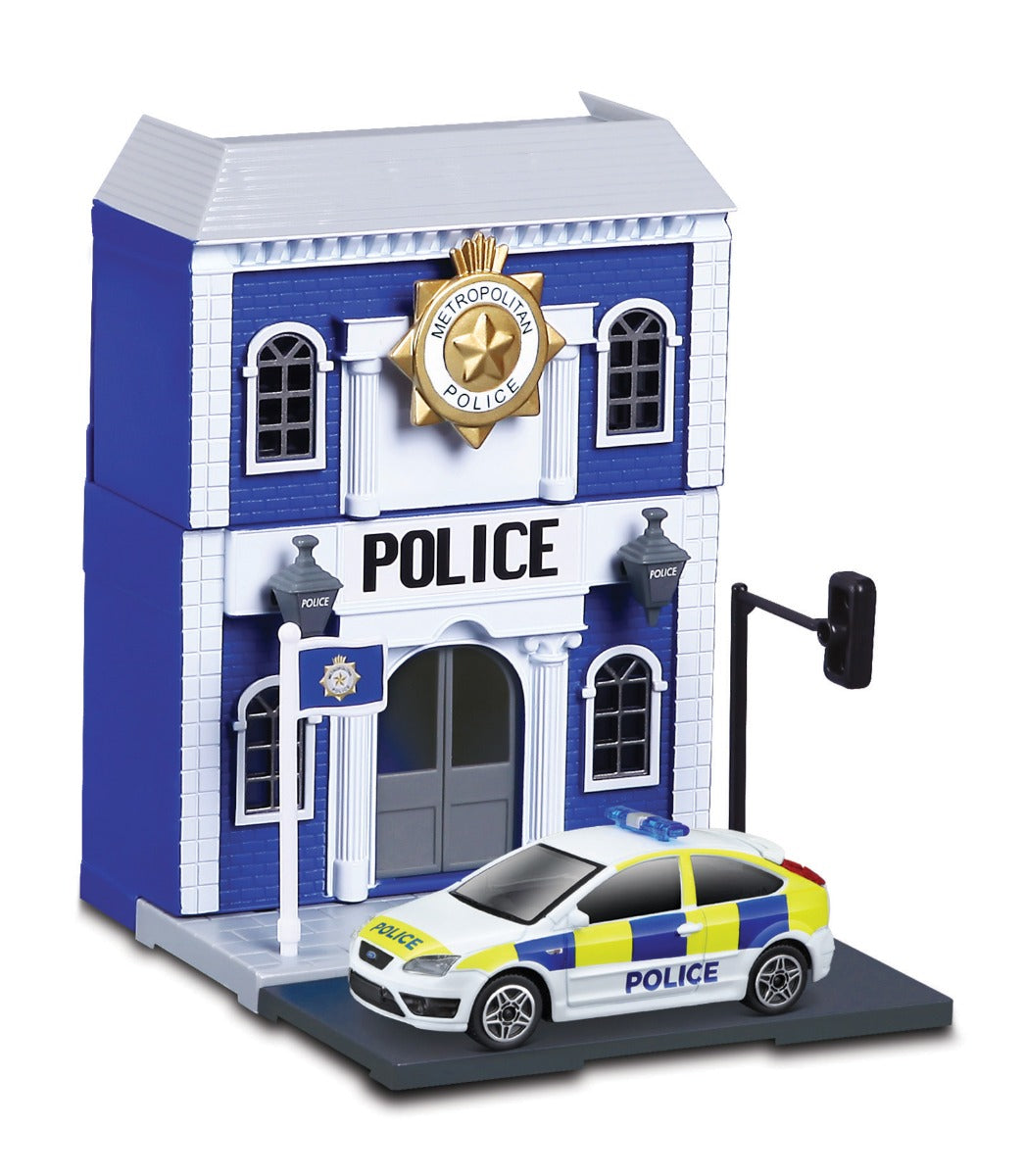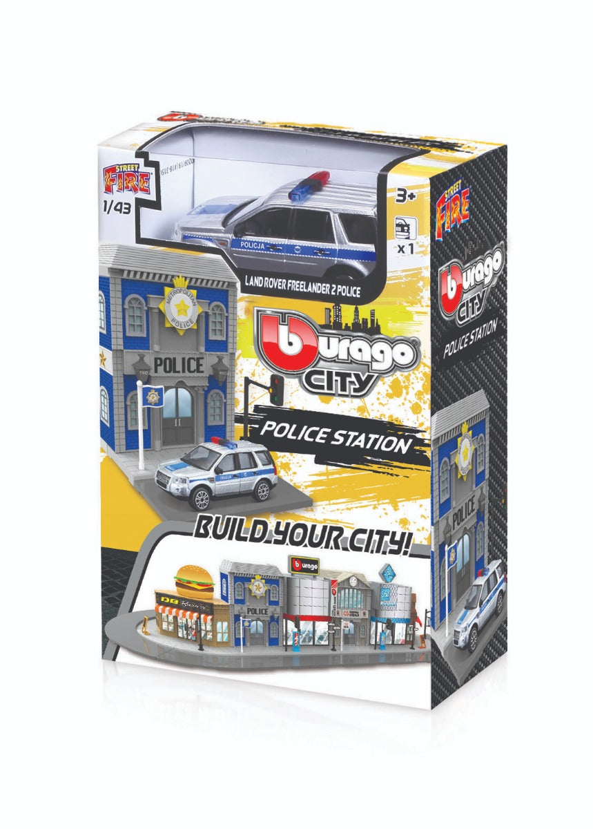 Bao gồm 6 SKU, mỗi hộp sản phẩm gồm: 1 xe die-cast chất lượng tỉ lệ 1/43, các miếng ghép để lắp ráp lại thành các tòa nhà trong thành phố như Police Station, Train Station hay Fast Food,v.v
