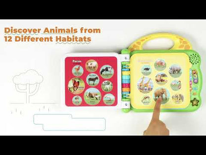 - Sản phẩm giúp bé khám phá hơn 100 loài động vật khác nhau nhiều màu sắc giúp bé nâng cao khả năng học hỏi, nhận biết nhờ tính năng tương tác hiện đại là chạm vào hình ảnh trên sách. Khi bé chạm vào hình ảnh trên sách thì những thông tin về bạn động vật và môi trường sống sẽ được đọc lên.