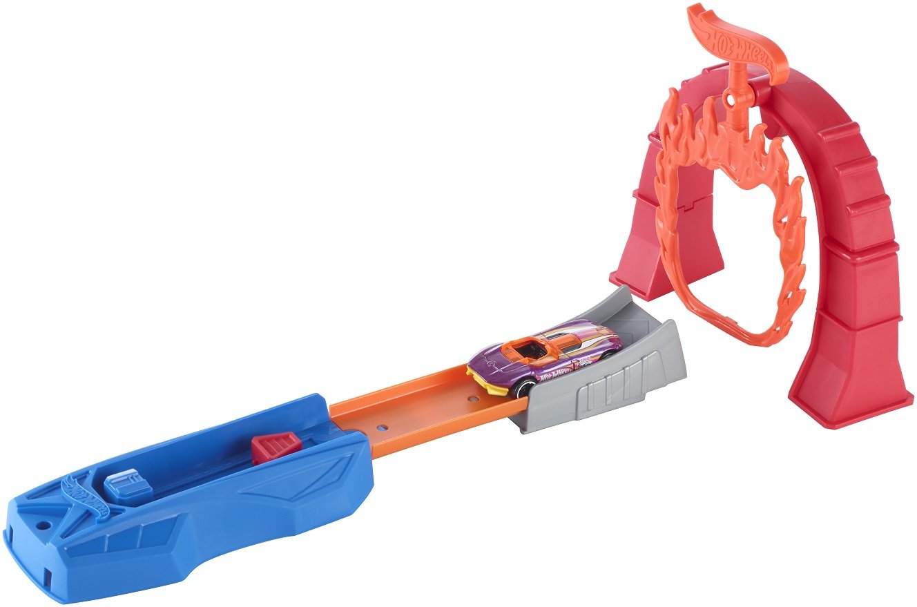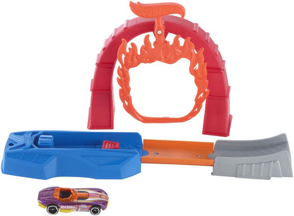 Đồ chơi bộ thử thách cổ điển Hot Wheels 2 FWM87/FWM85 bao gồm: 01 xe đua cực ngầu, đường đua màu cam nóng bỏng, một máy phóng siêu tốc độ và một mô hình vòng lửa.