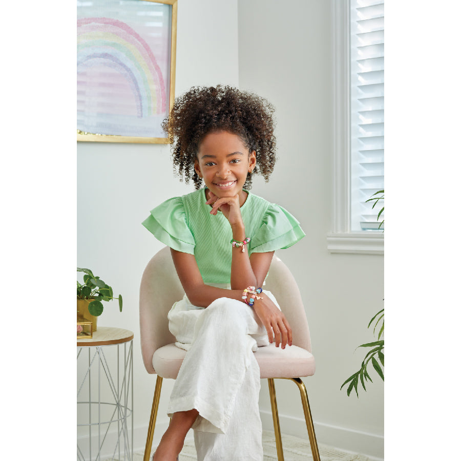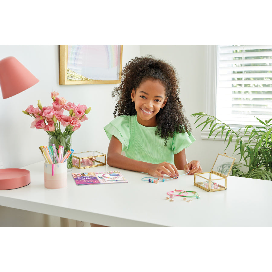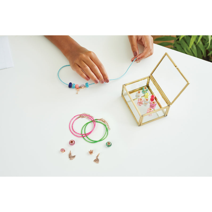 Bộ trang sức lấp lánh với nhiểu phụ kiện đá quý cho bé thỏa sức sáng tạo nên những chiếc vòng tay đầy cá tính và ấn tượng.