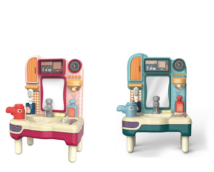 Bồn rửa mặt mini xinh xắn có 2 màu đỏ và xanh, với 12 chi tiết kèm theo cho bé tha hồ khám phá.