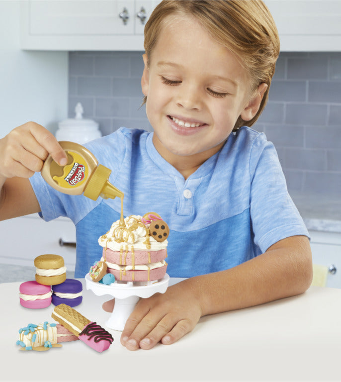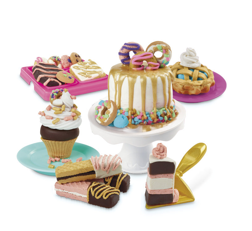 Lấy cảm hứng từ bữa tiệc hoàng gia, bữa tiệc bánh phủ vàng, bộ sản phẩm là một bộ sản phẩm rất sáng tạo của Playdoh. Bé trở thành một người thợ làm bánh và tạo ra những chiếc bánh 2 tầng thật thú vị, thêm một lớp nước sốt phủ vàng lấp lánh giúp bánh thêm ngon và bắt mắt.