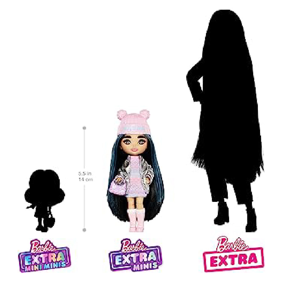 Búp bê Barbie® Extra Minis™ theo chủ đề mùa đông này đã sẵn sàng vui chơi trong tuyết, mái tóc dài buộc dài với những điểm nổi bật màu xanh băng giá, chiếc váy in màu phấn và áo khoác phồng màu bạc ánh kim!