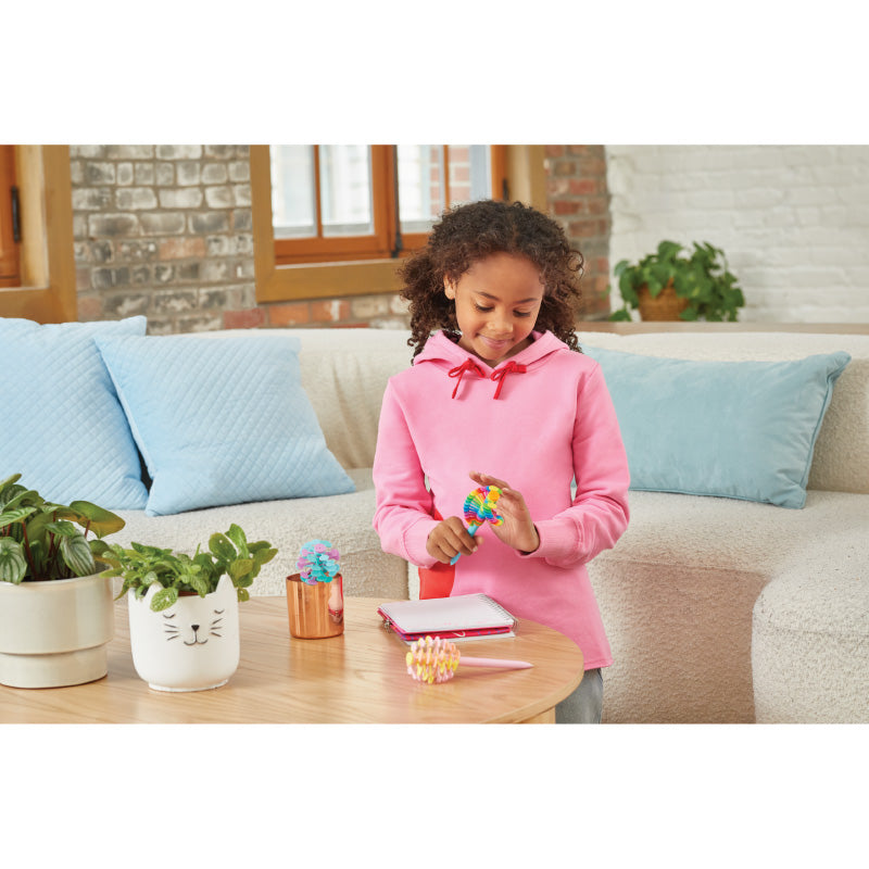 Chiếc bút bi này với phần trên đầu bút có thể đẩy và quay riêng biệt. Bé có thể xoắn, tạo hình cái cây, tạo hình bông hoa, một con rắn, hay bất cứ thứ gì bé có thể nghĩ ra. Chiếc bút này chắc chắn sẽ khiến những giây phút học tập của bé không còn cảm giác buồn chán, mang đến sự phấn khích cho bé, kích thích niềm vui học tập của bé.