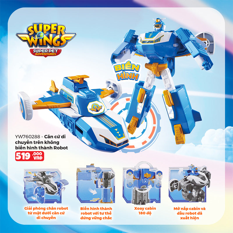 Căn cứ di chuyển trên không biến hình thành Robot khổng lồ được thiết kế sinh động và giống như nguyên tác từ bộ phim hoạt hình nổi tiếng trên toàn thế giới Superwings