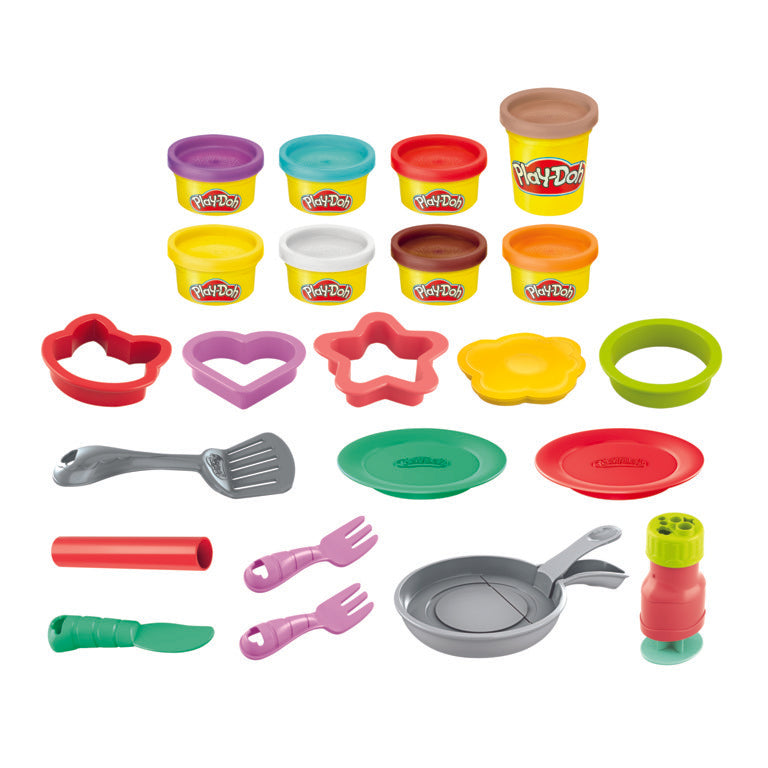 Bộ đồ chơi Play-Dohchảo bếp thần kì làm biến chiếc kếp bánh của bạn bay lên không trung bằng một nút nhấn. Làm bánh xếp Play-Doh với 4 hình dạng khác nhau bằng máy cắt và 8 hũ Playdoh , sau đó sắp xếp mọi thứ lên đĩa và phủ lên trên chúng bằng 1 lớp drizzle ! Món quà cho trẻ em từ 3 tuổi trở lên