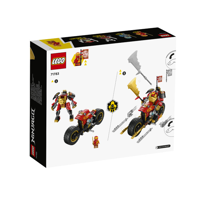 • Chiến xe Ninja – Tham gia trận chiến với bộ trò chơi NINJAGO® Chiến Xe Tiến Hóa Của Kai (71783) này có mô tô và chiến gáp
