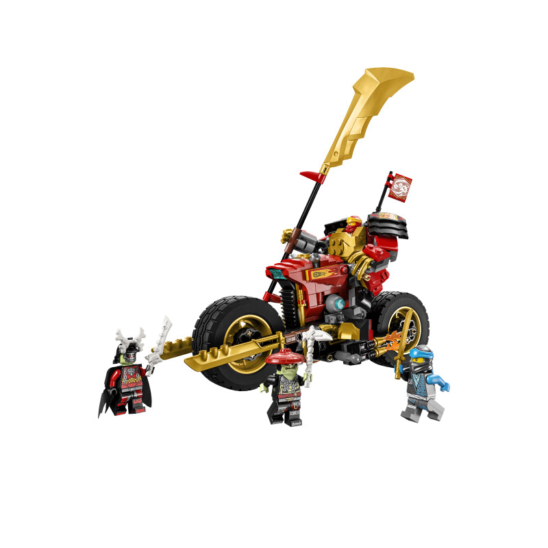 • Nâng cấp mô hình – Trẻ em có thể nâng cấp mô tô ninja thành một mô hình lớn hơn và mạnh mẽ hơn bằng cách thêm một lưỡi kiếm lớn bằng vàng và ống xả rực lửa