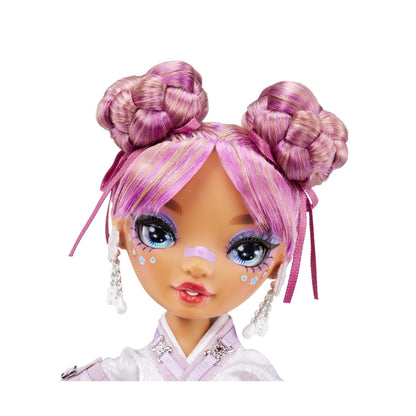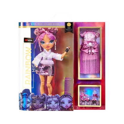 Rainbow High vừa ra mắt series 4 - cô nàng búp Lila Yamamoto. Cô gái đến đại diện cho vẻ đẹp, phong cách thời trang châu Á khi bố cô là người Nhật và mẹ là người Trung Quốc Cô nàng Lila Yamamoto sở hữu mái tóc màu tím dài được thắt bím và búi cao năng động Yamamoto đi kèm với 2 bộ trang phục, bé có thể mix và match tạo những phong cách khác nhau: