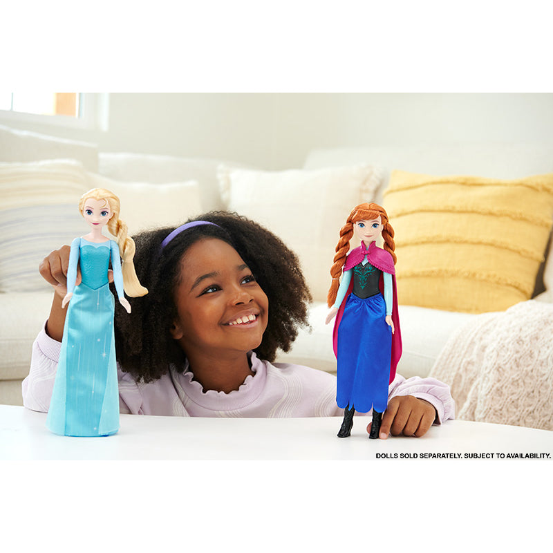Mái tóc dài của búp bê Anna này được tạo kiểu xoắn hai bên!