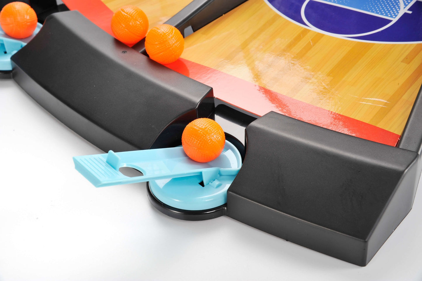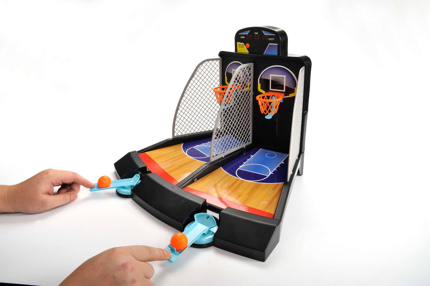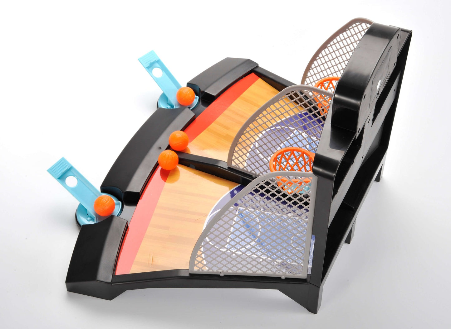 _ Sản phẩm dành cho 2 người chơi trở lên, hình thức đối kháng tranh tài trực tiếp. Bấm nút tính giờ và tính điểm tự động. Mỗi lượt tranh tài chỉ trong 60giây. Mỗi người chơi đặt bóng vào thanh phát bóng, dùng ngón trỏ nhấn nhẹ thanh phát bóng để đưa bóng về phía rổ và ghi bàn. Nếu bóng rơi vào rổ, bảng điện tử tính điểm tự động sẽ ghi điểm. Nếu bóng rơi ra ngoài, thì bảng điện tử sẽ không ghi điểm. Hết thời gian 60 giây, bảng tính điểm sẽ ngừng lại, ai ghi điểm nhiều hơn thì chiến thắng.