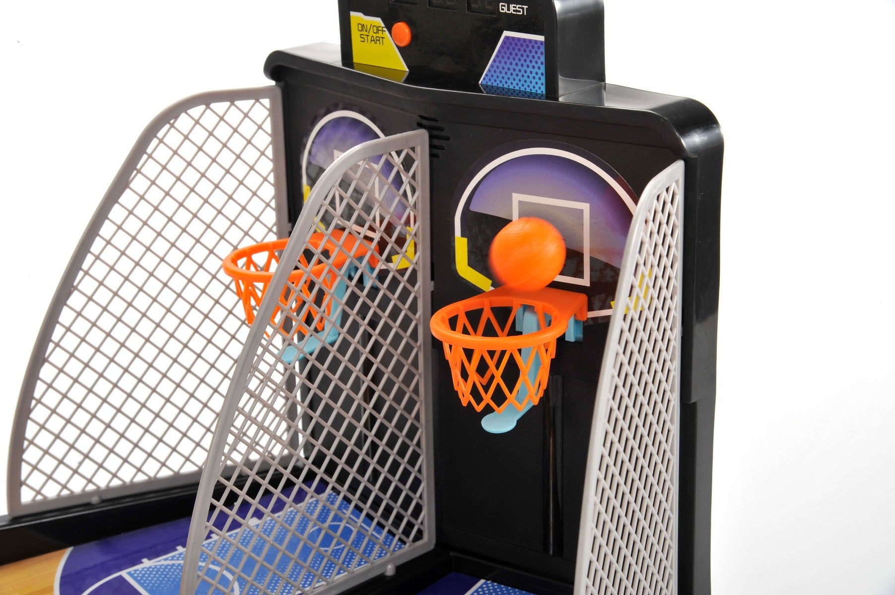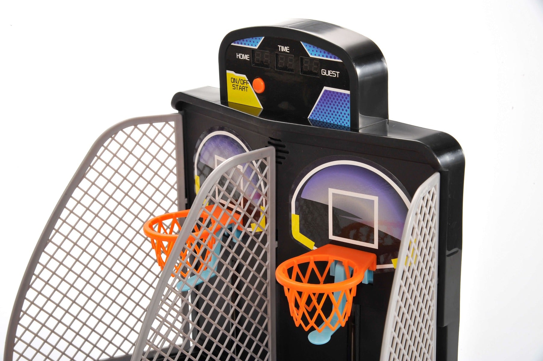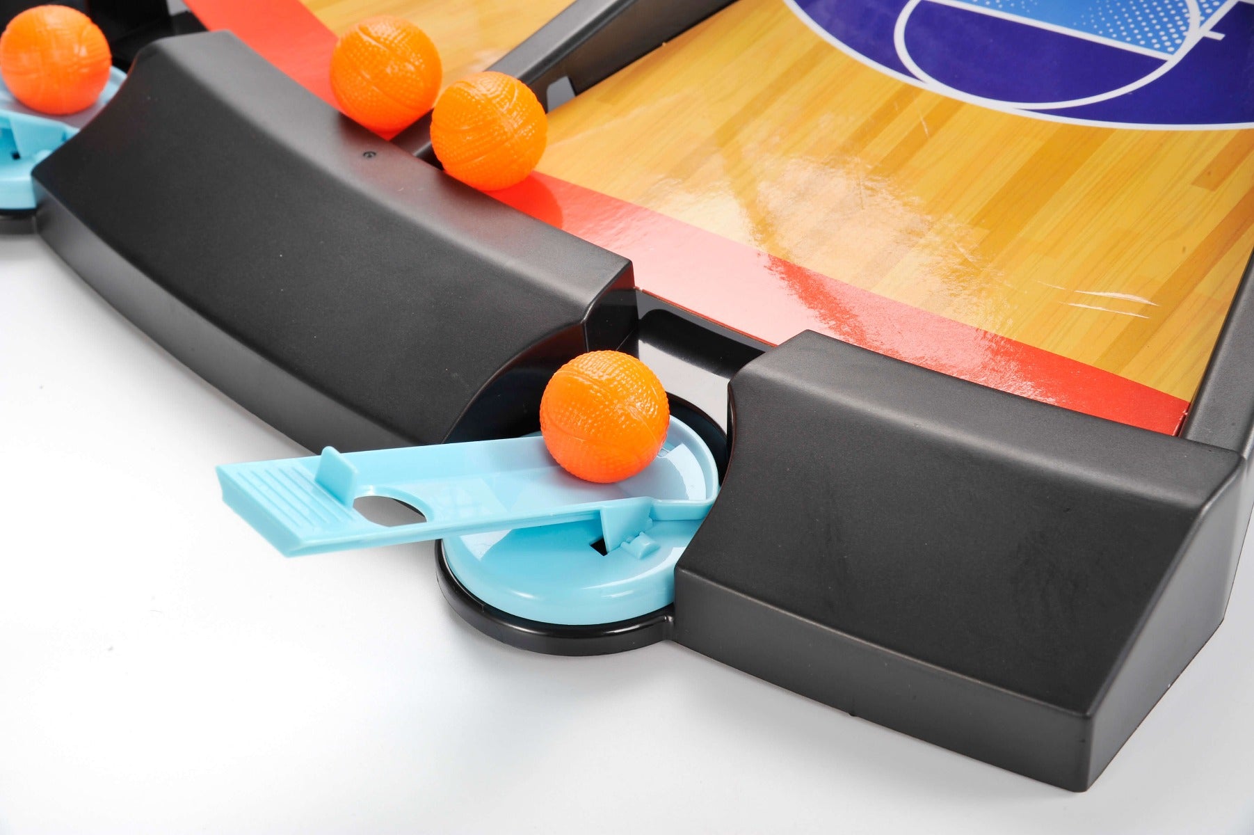 _ Sản phẩm dành cho 2 người chơi trở lên, hình thức đối kháng tranh tài trực tiếp. Bấm nút tính giờ và tính điểm tự động. Mỗi lượt tranh tài chỉ trong 60giây. Mỗi người chơi đặt bóng vào thanh phát bóng, dùng ngón trỏ nhấn nhẹ thanh phát bóng để đưa bóng về phía rổ và ghi bàn. Nếu bóng rơi vào rổ, bảng điện tử tính điểm tự động sẽ ghi điểm. Nếu bóng rơi ra ngoài, thì bảng điện tử sẽ không ghi điểm. Hết thời gian 60 giây, bảng tính điểm sẽ ngừng lại, ai ghi điểm nhiều hơn thì chiến thắng.
