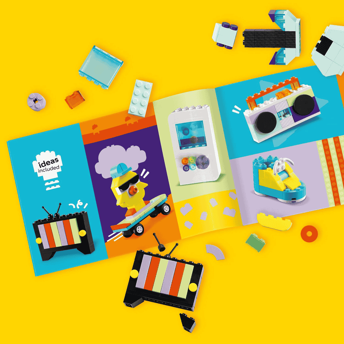 Tạo ra những món đồ thú vị để chơi và trưng bày! Lắp ráp một chiếc tay cầm game, con khủng long đeo kính, chiếc điện thoại có thể mở và đóng, bộ DJ với tai nghe, ván trượt, xe tải quái vật với bánh xe quay và còn nhiều món khác. Kết hợp các mô hình để thêm phần thú vị – ví dụ như đeo tai nghe lên con khủng long và đặt khủng long lên ván trượt!