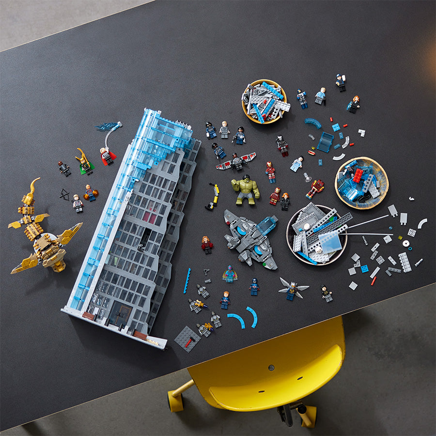 Tái hiện tòa tháp mang tính biểu tượng nhất trong Vũ trụ Avengers, cùng với những khung cảnh ngoạn mục có sự góp mặt của những nhân vật siêu anh hùng. Với chiều cao hơn 35,5 inch (90 cm), mô hình trưng bày gồm 5.201 mảnh này bao gồm nhiều chi tiết thú vị từ vũ trụ điện ảnh MCU.