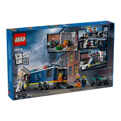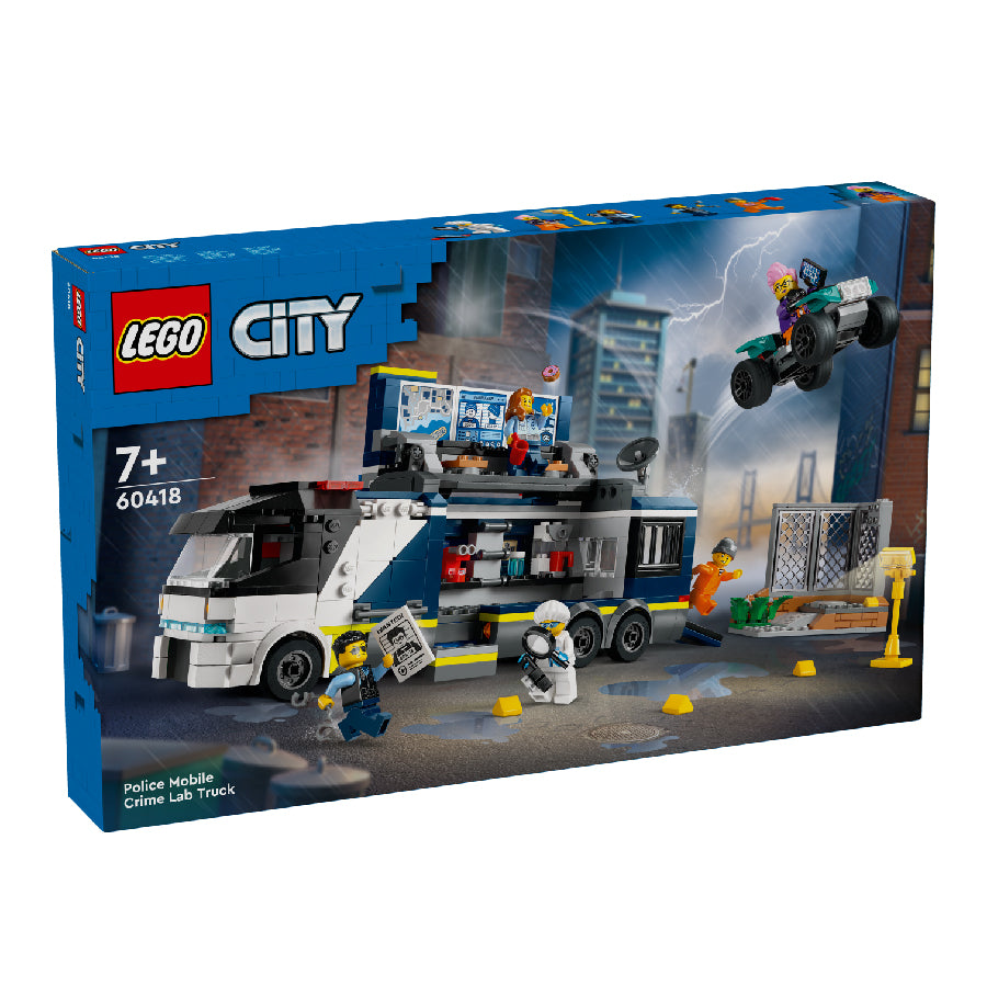 Lại có thêm tù nhân trốn thoát. Tham gia nhóm điều tra trên phòng thí nghiệm tội phạm di động. Chiếc xe tải này chứa đầy thiết bị pháp y để theo dõi kẻ gian, bao gồm màn hình camera quan sát, kính hiển vi và kính lúp! Liệu dấu vết manh mối có thể dẫn bạn tới những kẻ chạy trốn hay không? Những cuộc phiêu lưu tuyệt vời đang chờ đợi với LEGO® City!