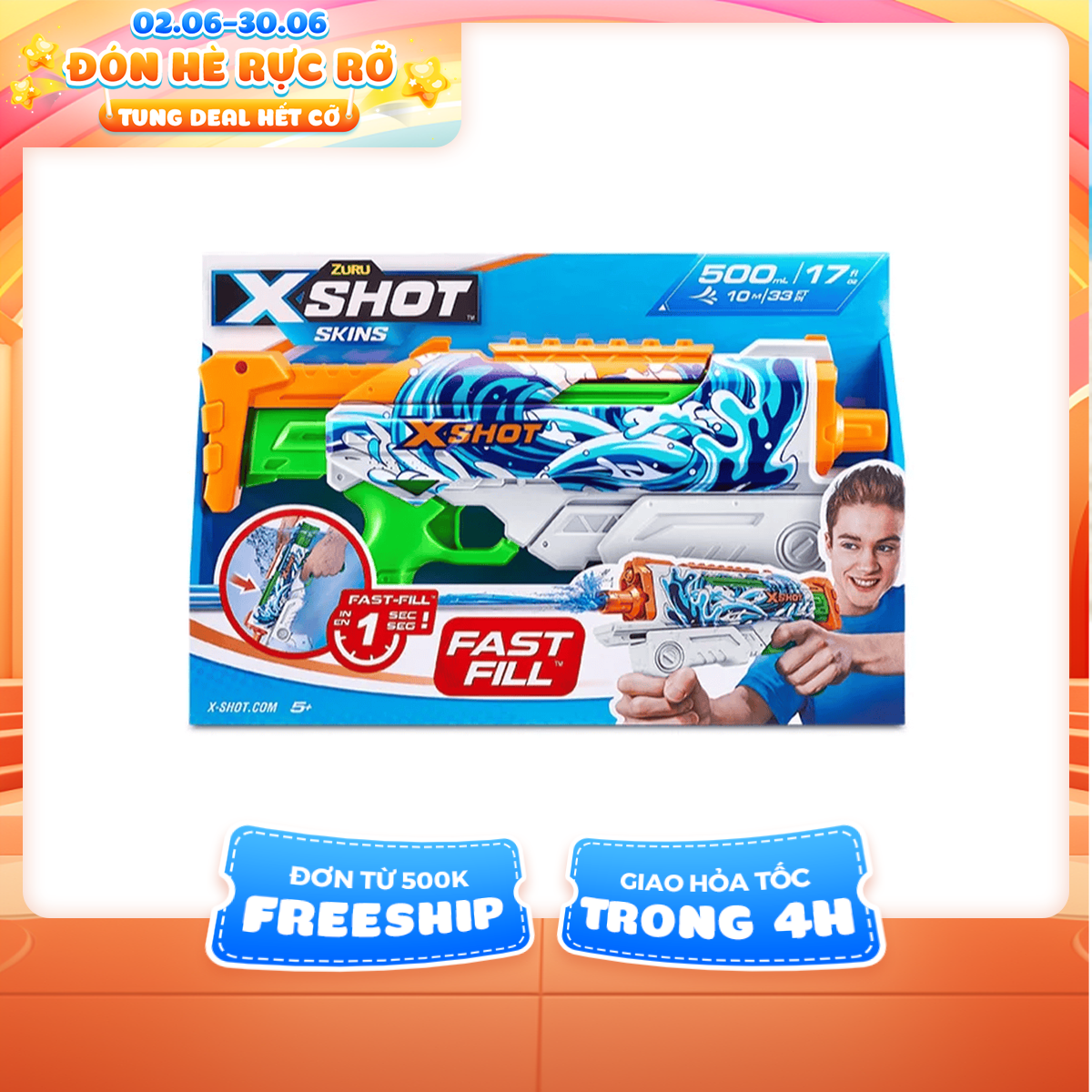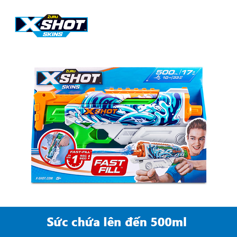 - NẠP NƯỚC NHANH: X11854A thuộc dòng FAST-FILL của Xshot, đây là dòng đồ chơi phun nước nạp đầy nhanh nhất từng được tạo ra, cho phép nạp đầy chỉ trong 1 giây và quay lại cuộc chiến nước nhanh hơn đối thủ của mình rất nhiều
