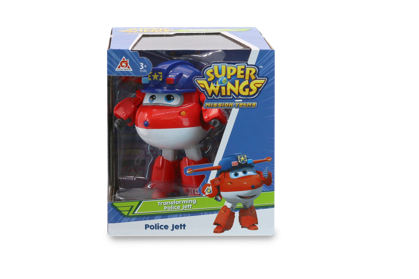 Robot Biến Hình Máy bay cỡ lớn Super Wings – Jett team cảnh sát mô phỏng nhân vật Jett cảnh sát, chịu trách nhiệm hỗ trợ phá án và gây rối trật tự trong phần 5 phim Đội bay siêu dẳng. Bé cần 10 bước để biến chiếc máy bay này thành robot Jett cảnh sát.